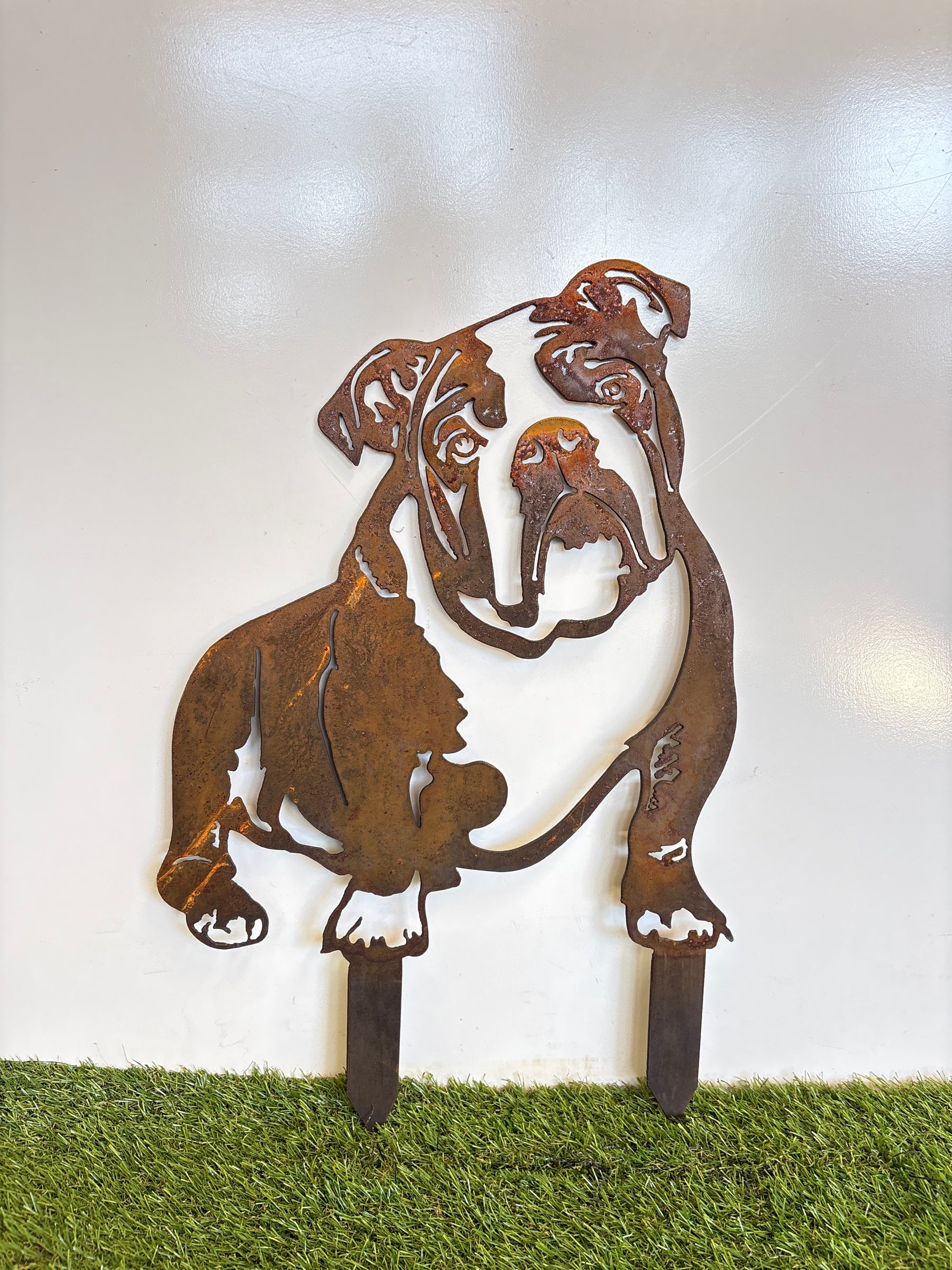 Available as a metal wall hanging or metal garden art with a spike