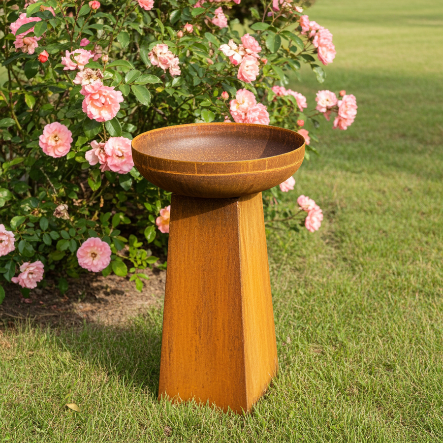 This Modern Contemporary Designed Free Standing Bird Bath is the perfect addition to your garden. Crafted from durable metal. This bird bath is the perfect way to enhance your outdoor space.