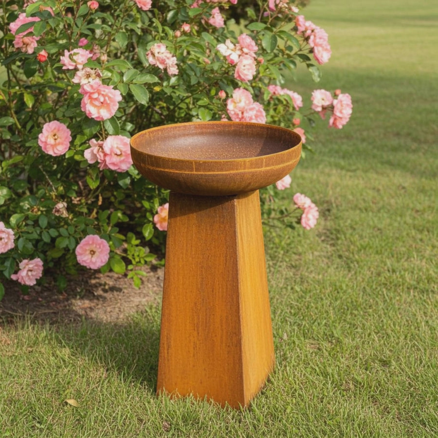 All of our products are available in a choice of two unique finishes. Our naturally rusted option helps to create a gorgeous and rustic styling that will look fantastic in any outdoor area, while our natural raw steel finish will allow you to paint, or powder coat your bird bath or bird feeders in any style that you would like. Due to the way that we rust our steel, each product will be completely unique in colour and style.