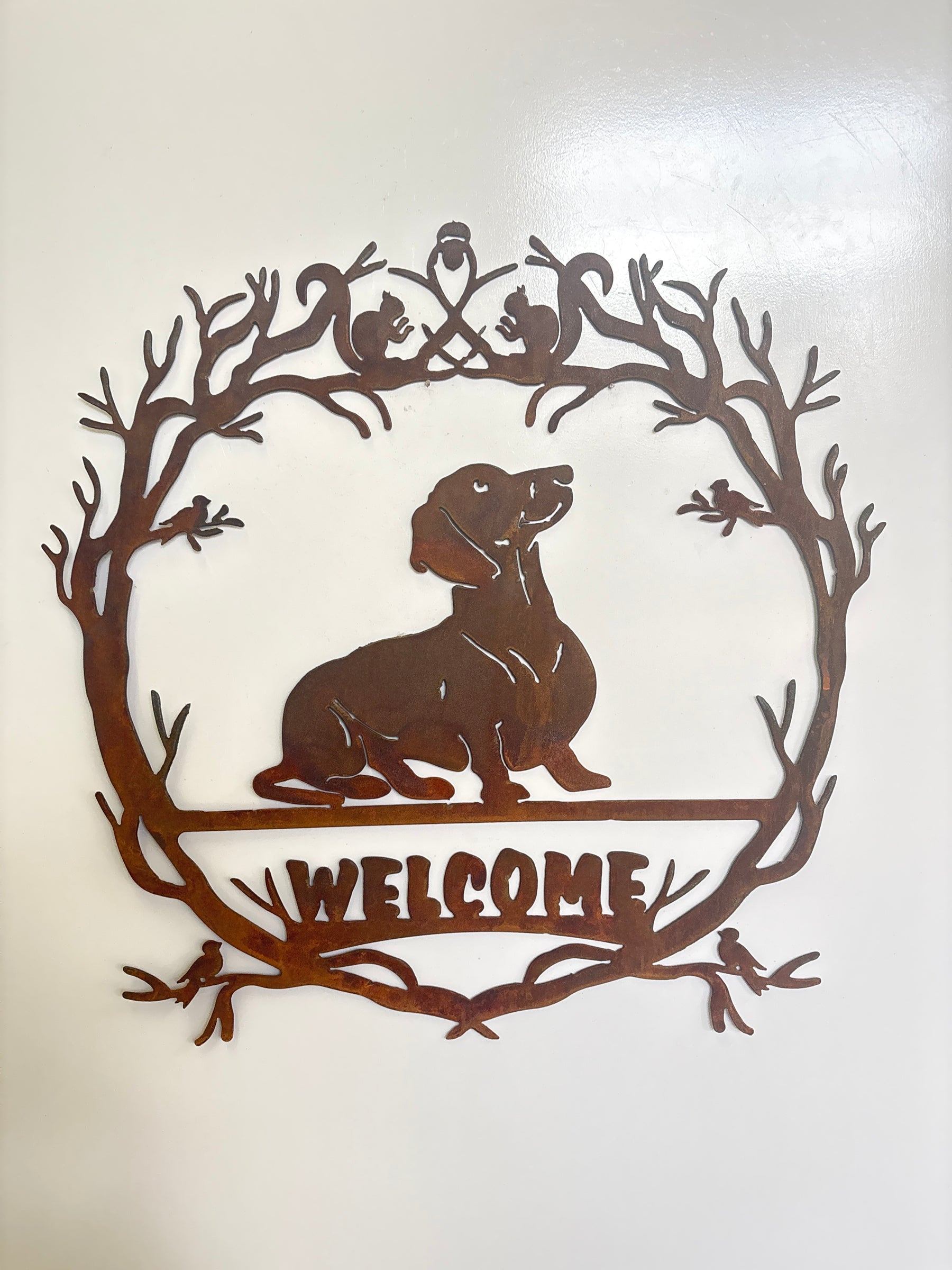 Dachshund Welcome Sign Metal Wall Art-Old n Dazed
